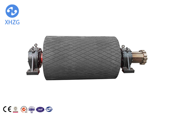 包膠滾筒是皮帶輸送運(yùn)輸系統(tǒng)中重要部件和組成部分。滾筒的包膠能有效改善輸送系統(tǒng)的運(yùn)行狀況,保護(hù)金屬滾筒不被磨損,防止輸送帶的打滑,使?jié)L筒與皮帶同步運(yùn)轉(zhuǎn),從而保證皮帶高效的、大運(yùn)量的運(yùn)轉(zhuǎn)。滾筒的包膠還能有效地防止?jié)L筒與皮帶之間的滑動(dòng)摩擦,減少滾筒表面的物料粘結(jié),從而減小皮帶的跑偏和磨損。廣泛用于:鋼鐵、冶金、煤炭、水泥、發(fā)電、化肥、糧庫(kù)、港口等行業(yè)。